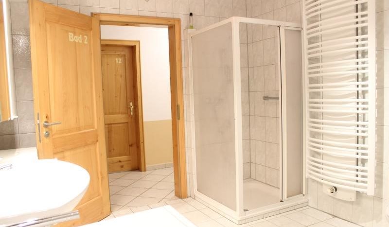 Es steht den Gästen sowohl drei gemeinschaftliceh Küchne als auch vier großzügigege Bäder zu Verfügung.