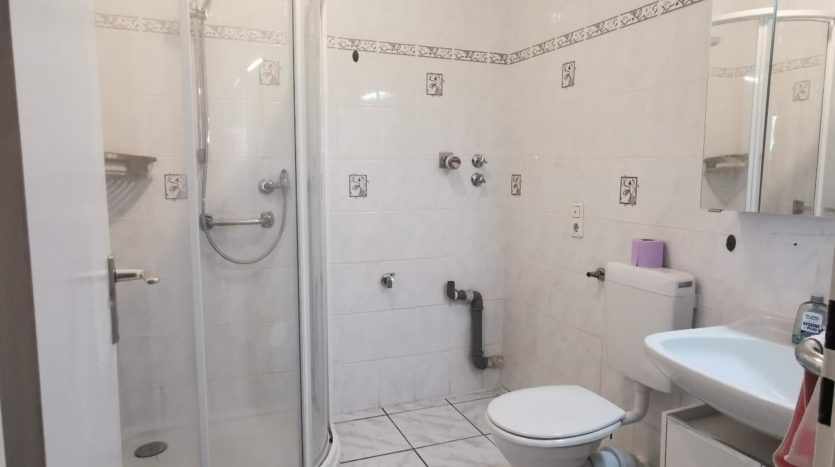 Das Bad (ohne Fenster) verfügt über ein Waschmaschinenanschluss sowie Dusche.
