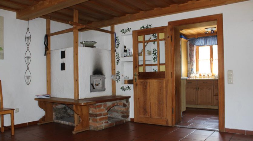 Im Haupthaus mit ca. 245 m² wird es dann erst richtig gemütlich, zum Teil auch etwas urig. In der großen Stube steht ein alter gemauerter Kachelofen. Beheizt werden kann das Haus selbstverständlich aber auch über eine moderne Öl-Zentralheizung. Das Hauptgebäude ist mit einem kleinen (ca. 10m²) gemauerten Gewölbekeller ausgestattet, und ist gerade bei den Weinliebhabern sehr gern gesehen.