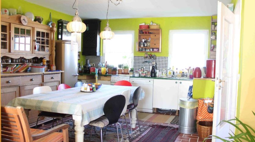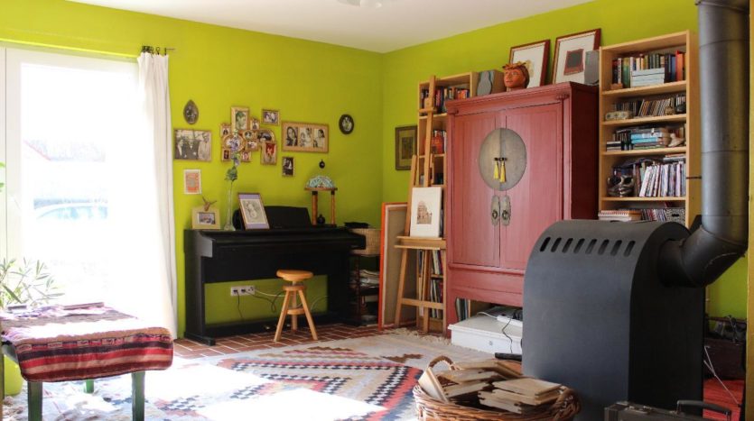 Vom hellen Eingangsbereich des Erdgeschosses , nebst Gäste-WC, gelangt man in den großzügig gestalteten Ess- und Küchenbereich, durch diesen auch das offen strukturierte und lichtdurchflutete Wohnzimmer zu betreten einlädt. Hier spendet ein freistehender Schwedenofen zusätzlich wolhige Wärme an kälteren Tagen.