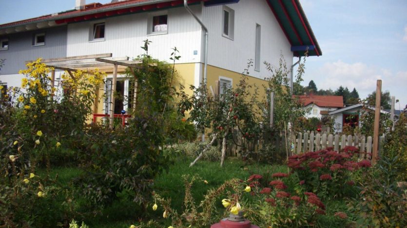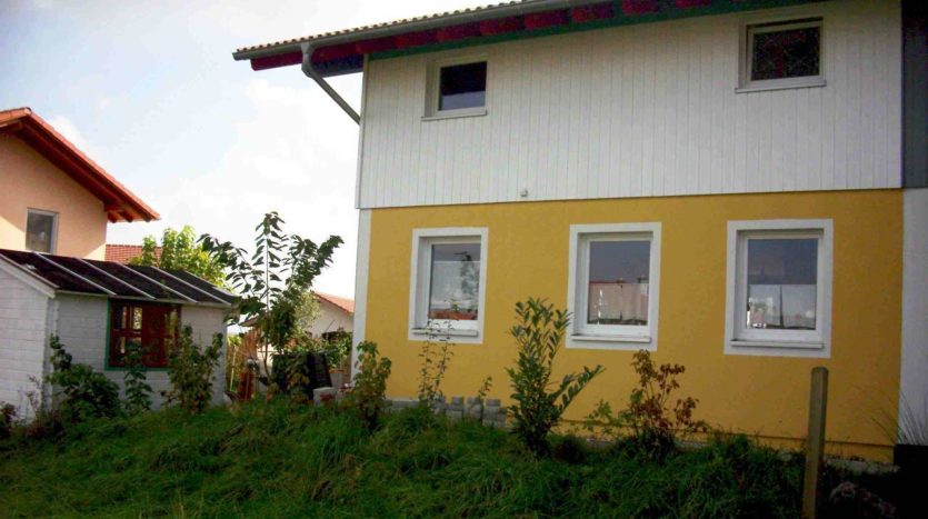 Die bunte Doppelhaushälfte wurde im Jahr 2012 in Ständerbauweise im oberbayerischen Obing, Ortsteil Frabertsham vom Eigentümer errichtet und seitdem Bewohnt.