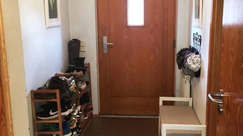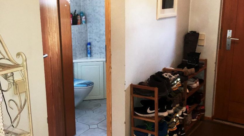 Betreten Sie die Immobilie, finden Sie zur Ihrer Rechten die Gardarobe sowie das Gäste-WC, zur linken die Küche mit Fenster und hellem Fliesenboden. Im südlich ausgerichteten Wohnzimmer ist ein neuwertiger, dunkler Laminatboden verlegt und ein Schwedenofen spendet den neuen Eigentümern an kalten Wintertagen wohlige Wärme.