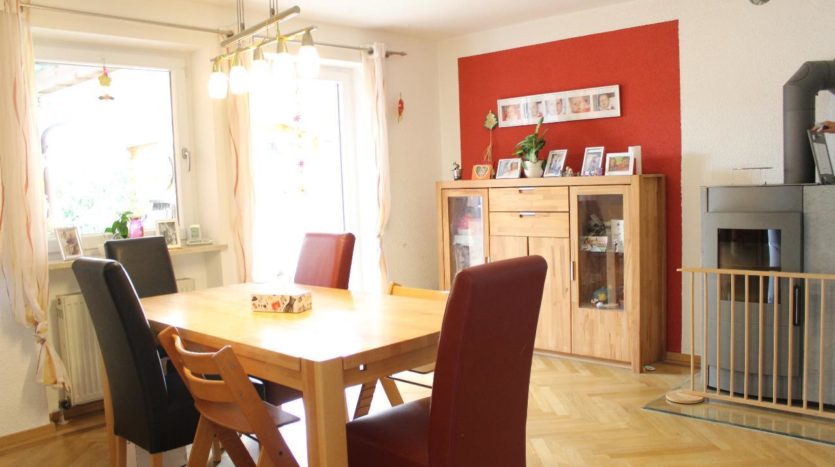 Im Eingangsbereich finden Sie zur linken die Gardarobe sowie ein Gäste-Wc. Abgetrennt durch den Windfang betreten Sie das großzügige Esszimmer mit einem hochwertigem Holz-, Pelletsofen, dieser bietet nebst Zentralheizung zusätzlich wohlige Wärme an kalten Wintertagen. Die Einbauküche mit Markengeräten ist im Kaufpreis enthalten.