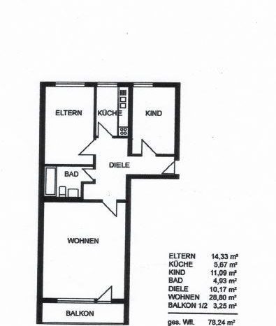 Insgesamt verfügt die Immobilie über drei Zimmer verteilt auf 78,25 m² Wohnfläche.