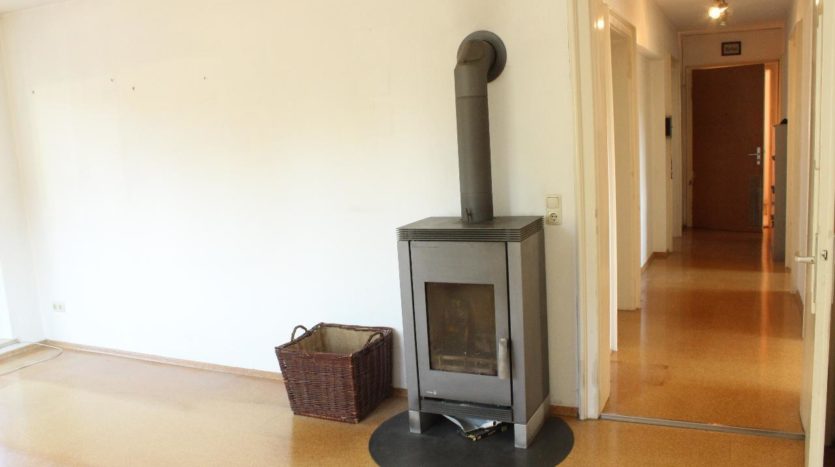 Die komplette Wohnung wird aktuell mit einem Holzofen beheizt, Warmwasser wird durch den im Bad befindlichen Boiler erhitzt.