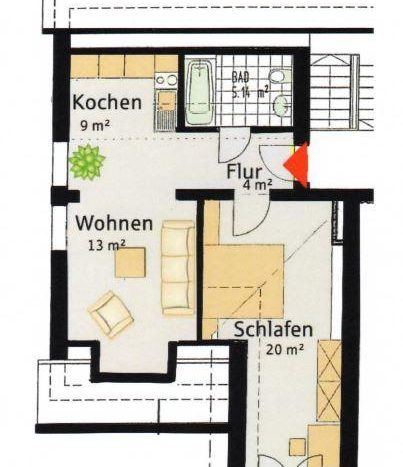 Seit 1.5.2019 ist die 2-Zimmer-Wohnung für 400,- Euro Kalt vermietet.