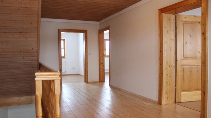 Im Obergeschoss, das über eine schöne massive Holztreppe zu begehen einlädt, befinden sich vier Schlafzimmer. Diese sind mit warmen Korkboden ausgelegt, die Fenster im gesamten Haus sind doppelverglaste Isolierfenster und sorgen so für niedrige Heizkosten.