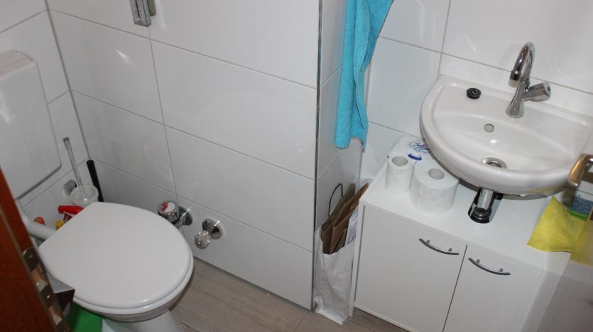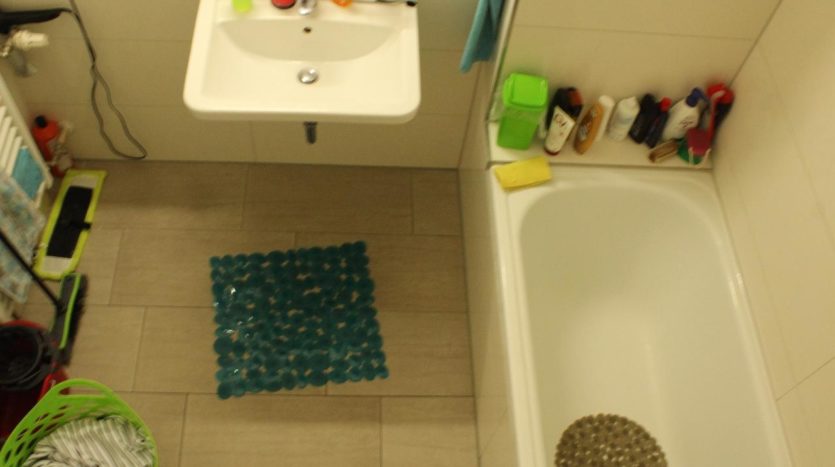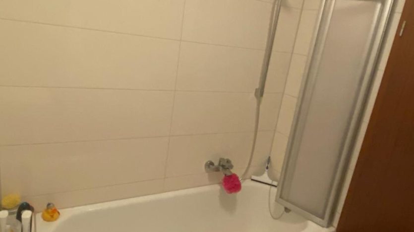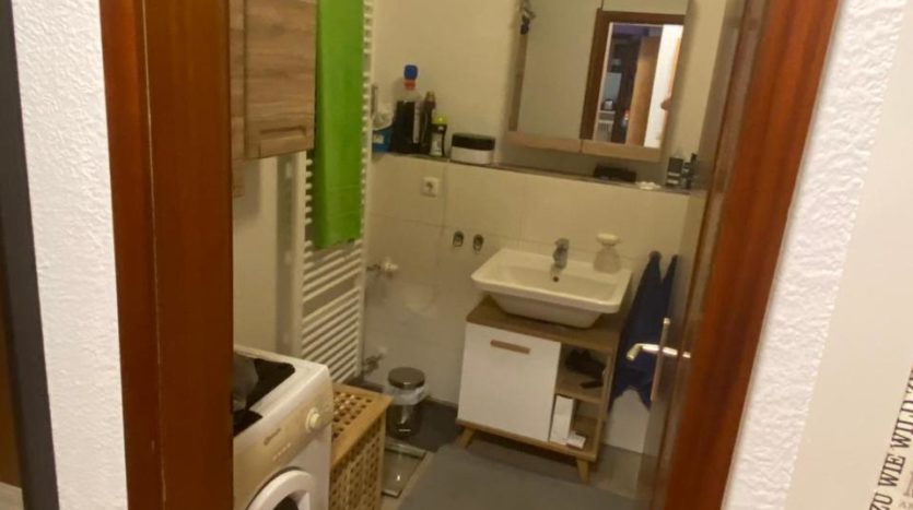Das frisch renovierte Bad ist vom WC abgetrennt und verfügt über eine Badewanne sowie Waschmaschinenanschluss.