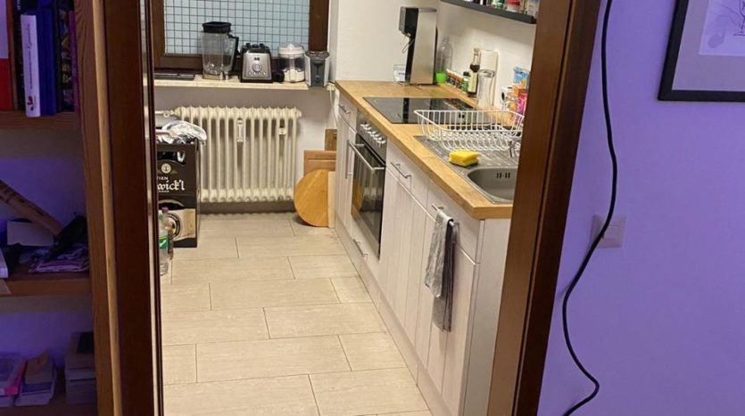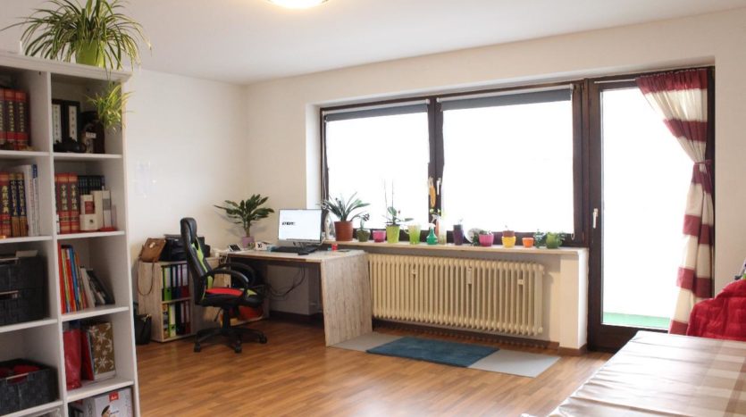 Geradeaus befindet sich das großzügige Schlafzimmer. Linkerhand betreten Sie den ebenso großzügigen Wohnbereich mit abgetrennter Küche welche über ein Fenster verfügt.