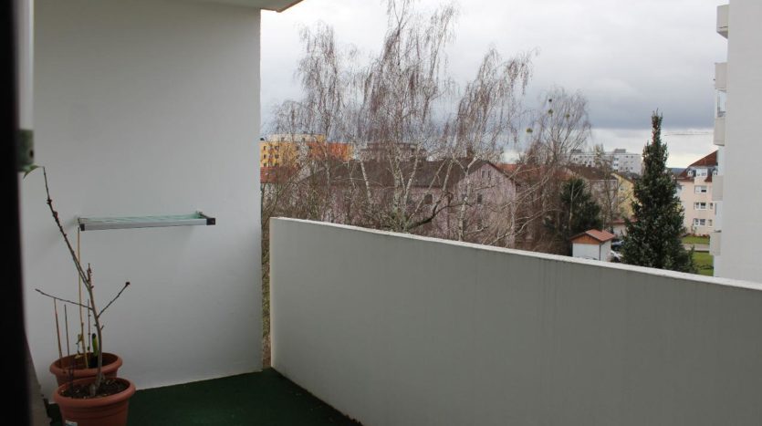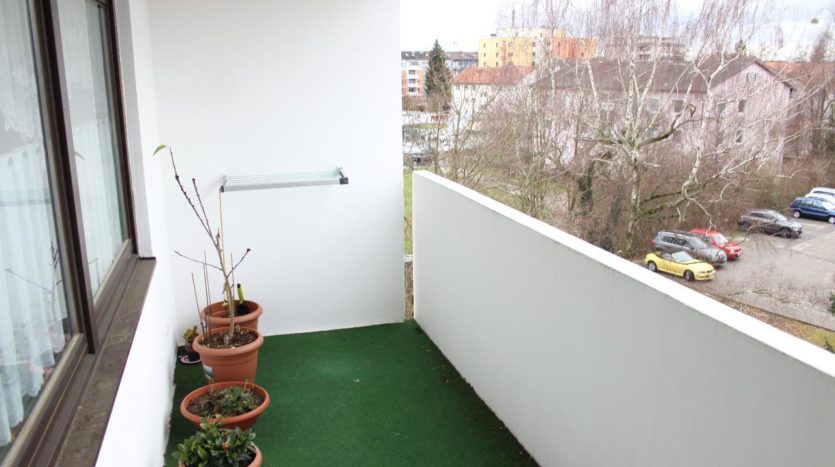 Vom Wohnzimmer ist der überdachte Balkon zu begehen.