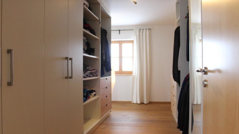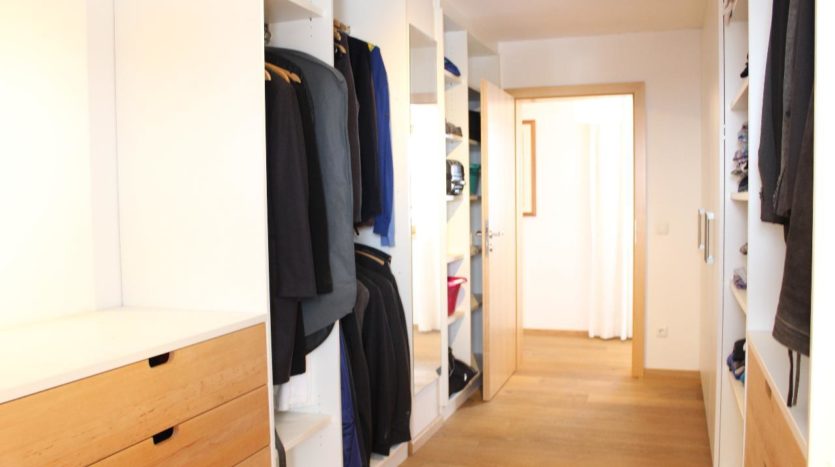 Ein besonderes Highlight im Obergeschoss ist das Elternschlafzimmer mit seinem begehbaren Kleiderschrank und direktem Zugang in das Bad.