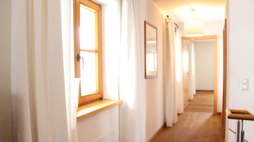 Über die massive Holztreppe gelangen wir in das erste Obergeschoss, auf diesem sich zwei Schlafzimmer, ein Büro (optional und mit nur geringem Aufwand, als weiteres Zimmer umbaubar) sowie dem hochwertigem lichtdurchflutetem Bad mit Badewanne, bodenebener Dusche sowie zwei Design-Waschbecken.