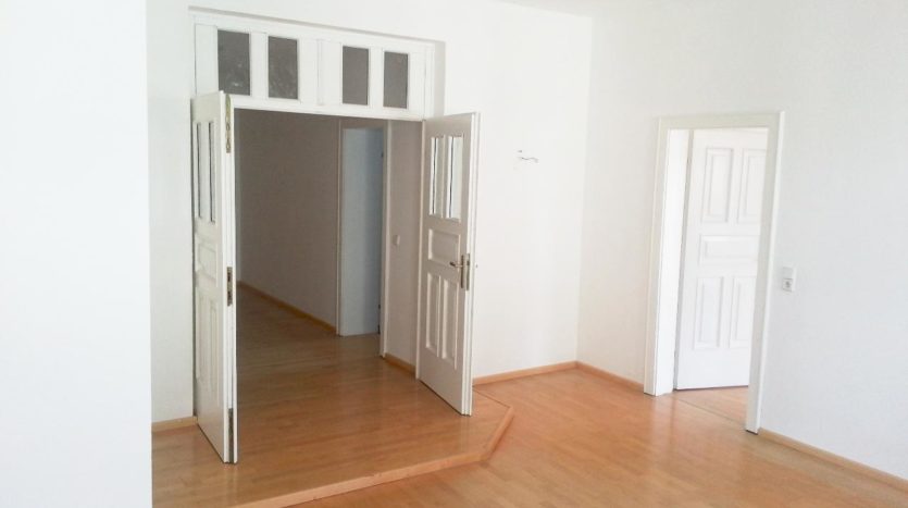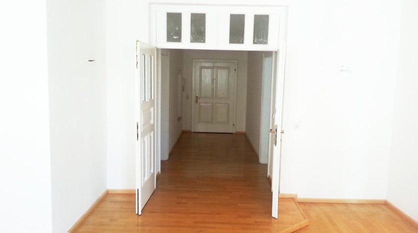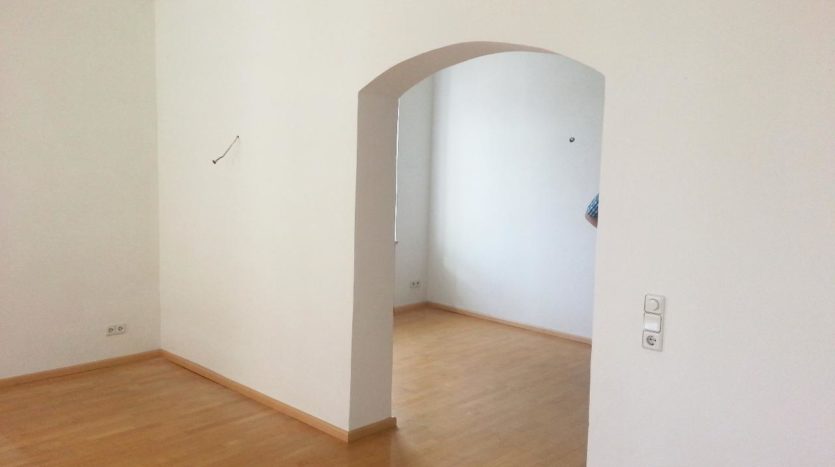Sie betreten die Wohnung im 1.Obergeschoss und stehen zentral in der großzügigen Diele. Geradeaus befindet sich das helle Wohnzimmer, gleich nebenan die Küche mit offenem Essbereich.