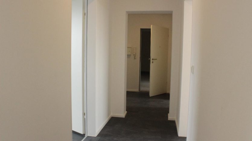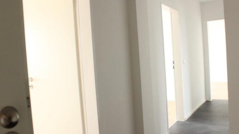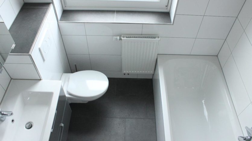 Sie betreten die Wohnung und stehen in Mitten vom großzügigen Flur. Rechter Hand finden Sie das Tageslichtbad.