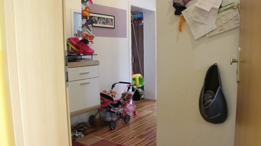Die Eigentumswohnung befindet sich im zweiten Stock (ohne Aufzug) und verfügt über drei Zimmer.